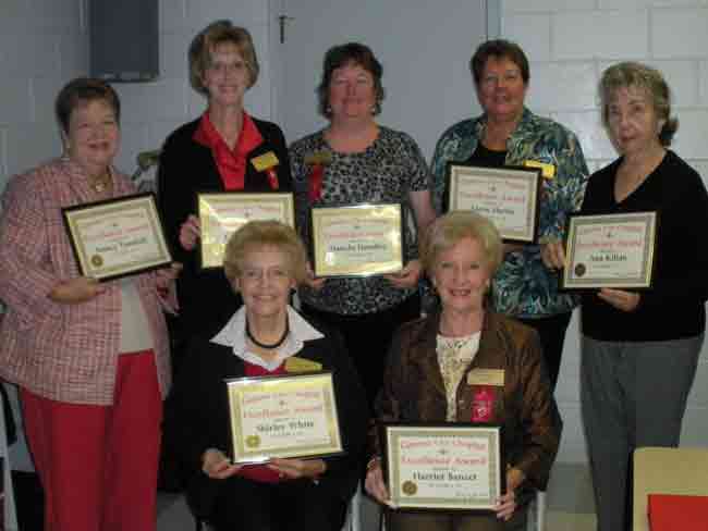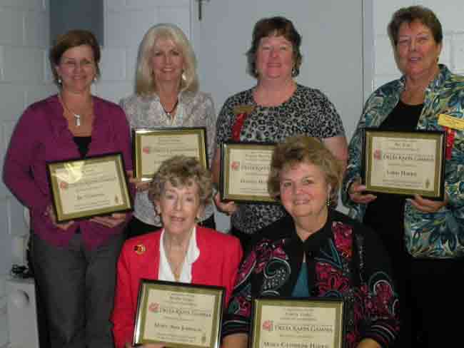 October 6, 2011 Gamma Chi Member Excellence Award winners (left to right) (seated) Shirley White, Harriet Banzet, (standing) Nancy Tunstall, Connie King, Danylu Hundley, Loree Harris and Ann Kilian |