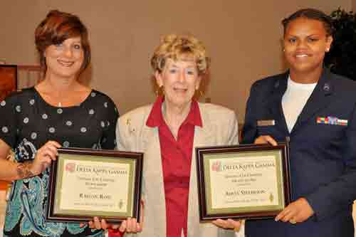 May 6, 2011 Awards Recipients (from left to right) Raegan Ross, member, Gamma Chi Scholarship recipient; Mary Ann Johnson, Scholarship Chair; and Alicia Steverson, Grant-in-Aid recipient |