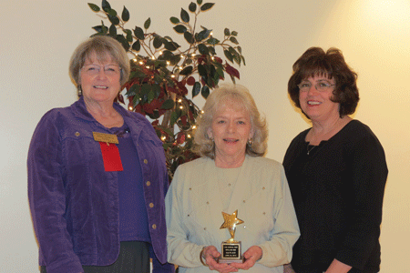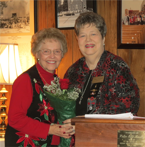 December 5, 2013 -President Nancy Tunstall, left, presents Shirley White a rose in appreciation of her dedicated service as treasurer |