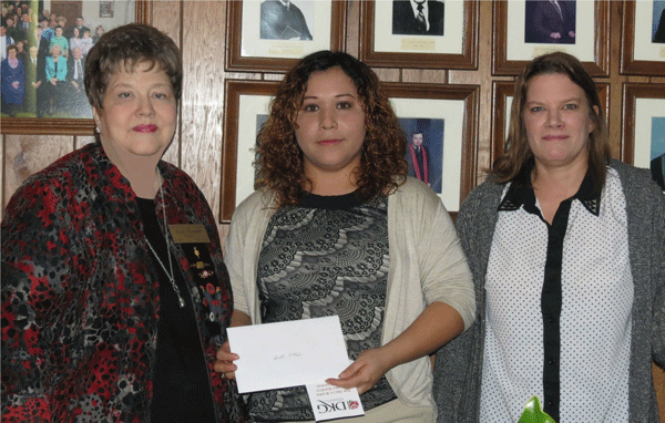 December 5, 2013 Speakers from Citizens Against Domestic Violence - left to right: President Nancy Tunstall presents a donation from the Gamma Chi Chapter for Citizens Against Domestic Violence to Anna Cervantes, Victim Services Coordinator, and Dana Watkins, Displaced Homemaker Coordinator |