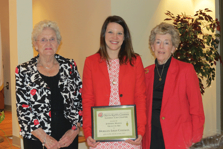 May 2, 2013 Presentation of the Josephine Myrick Grant-in-Aid (from left to right) Presenter Josephine Myrick, Recipient Morgan Leigh Coleman and Scholarship Chair Mary Ann Johnson |