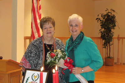 May 2, 2013 President Nancy Tunstall presents a rose to retiree Pat Riethmeier |