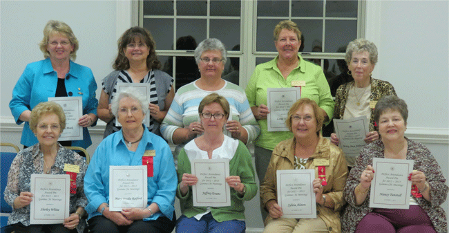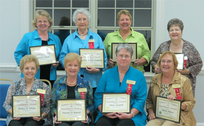 October 3, 2013 Member Excellence Awards (front row left to right) Shirley White, Harriet Banzet, Mary Austell and Sylvia Alston (back row left to right) Janis Meek, Mary Brodie Raiford, Loree Harris and Nancy Tunstall not pictured: Mary Catherine Harris and Connie King |