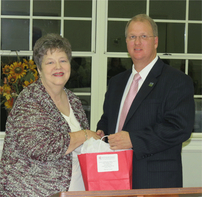 October 3, 2013 (left to right) President Nancy Tunstall presents Rep. Wray with a token of appreciation for his visit |
