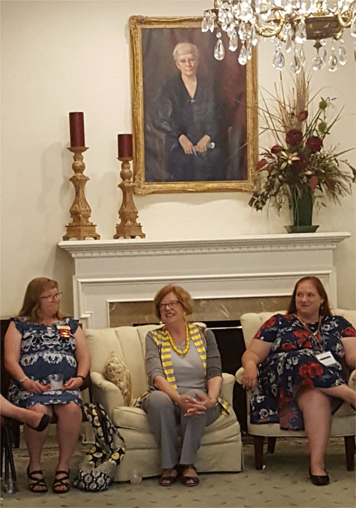 July 2018 - DKG International President Carolyn Pittman (center) talks with two LMS attendees while visiting the DKG Headquarters |