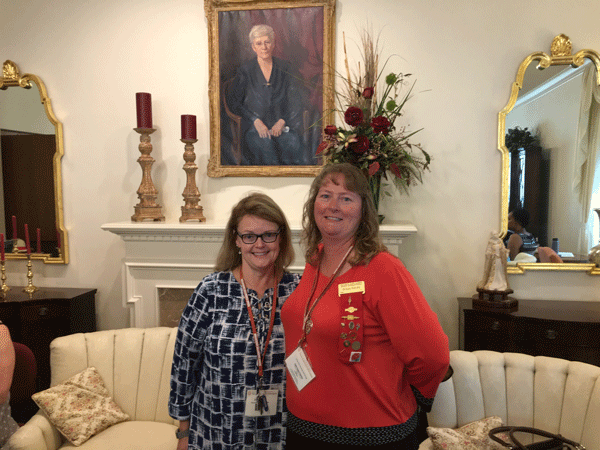 July 2018 - President Evelyn Hall (left) with her roommate Susie Swope of New Mexico attended the Golden Gift Leadership Management Seminar at McCombs School of Business on the University of Texas on the Austin campus; they are pictured inside of DKG Headquarters in Austin, Texas |