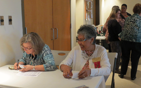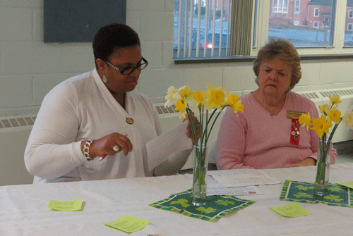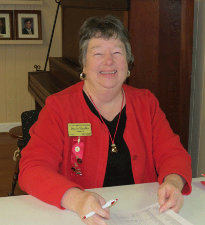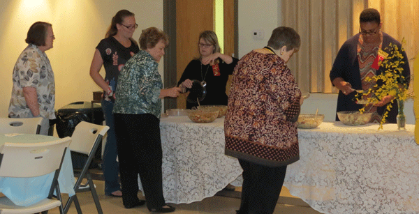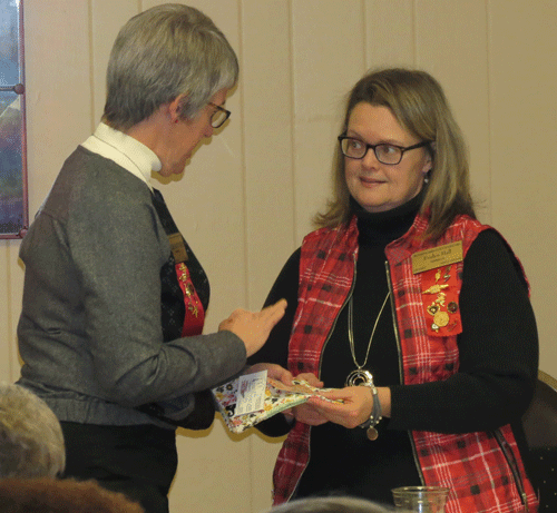March 7, 2019 - Littleton Group Hostess Chris Skinner, left, is taking up the meal money while Dr. Sylvia Alston is distributing tickets/taking up money for the afghan raffle |