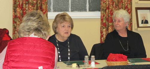 December 5, 2019 - Sheila Robertson, Kathy Stewart (guest), and Nancy Tunstall listening to Gail Coleman |