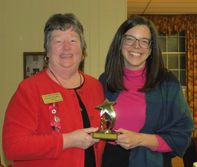 December 5, 2019 - Danylu Hundley (left) presents Jenny O’Meara with the Gamma Chi Rising Star Award for her strong potential for successful leadership at the chapter and state levels and beyond; she will be the chapter’s nominee for the NC DKG Rising Star Award to be presented at the state convention next May |