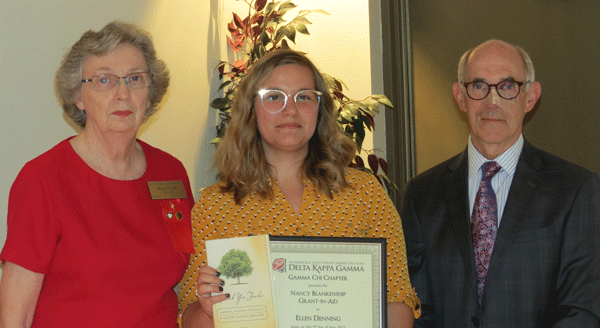 May 7, 2019 - Nancy Blankenship Grant-in Aid Award, from left, Scholarship Committee Chair Betsy Clark, Hailey Stroud, and Presenter Richard Blankenship |