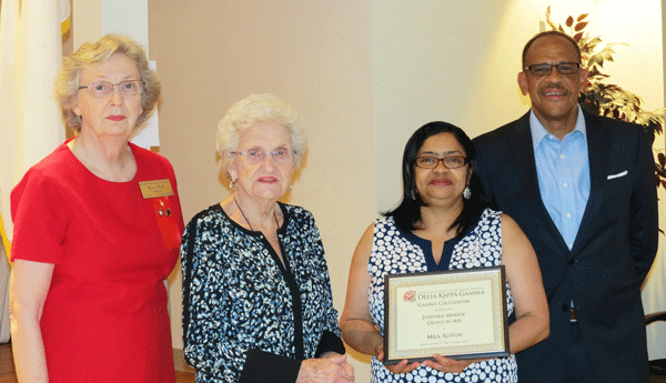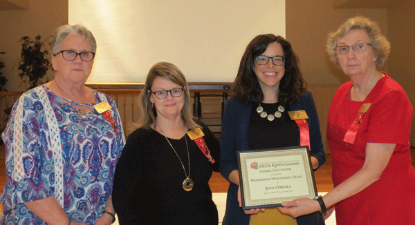 May 7, 2019 - Professional Development Grant Awards, from left, Mary Austell, Evelyn Hall, Jenny O'Meara, and Scholarship Committee Chair Betsy Clark |