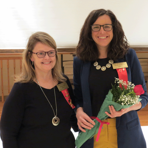 May 7, 2019 - President Evelyn Hall, left, presents Jenny O'Meara with a rose in appreciation of her presenting the program, also, a donation was made in her honor to the NC DKG Leadership Fund |