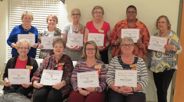 September 17, 2019 - Member Excellence Award recipients: front row from left to right, Shirley White, Nancy Tunstall, Evelyn Hall and Mary Austell; back row from left to right, Mary Catherine Harris, Linda Hall, Debra Clayton, Betsy Clark, Aimee Anderson, and Dr. Sylvia Alston; not pictured: Diane Colin, Loree Harris, and Jenny O’Meara |