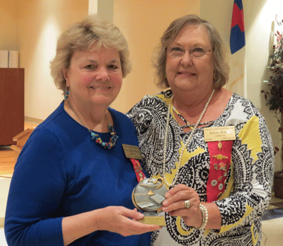 September 17, 2019 - Dr. Sylvia Alston, Awards Committee chair (right), presents Mary Catherine Harris with the Golden Key Award from the chapter |