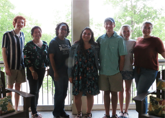 April 28, 2019 - Spring Cookout for beginning teachers; beginning teachers who were in attendance at the cookout are, from left, Matthew Stewart, Mona Liza De Leon, Jill Burnette-Ellis, Daniela Neuling, Grant O'Brien, Georgie Wilkins, and Briana Chase |
