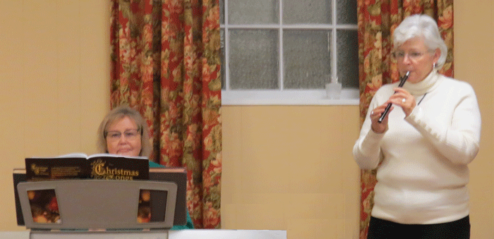 December 7, 2021 - Sallye Duncan on keyboard (left) and Diane Colin playing an Irish whistle entertained members with a delightful medley of Christmas carols |