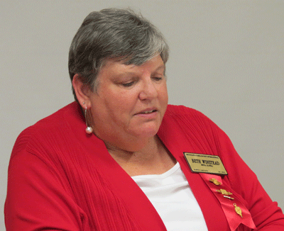 September 2, 2021 - Vice President Betsy Clark (right) presented a long stem red rose to Renee Mizelle, left, and President Evelyn Hall in honor of their recent retirement. |