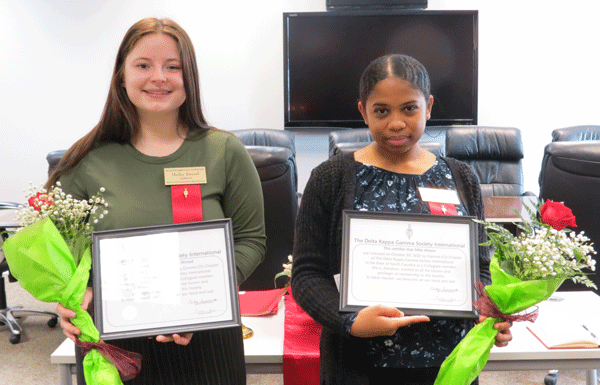 October 30, 2021 - Hailey Stroud (left) and Mila Alston were inducted as Gamma Chi's first collegiate members |