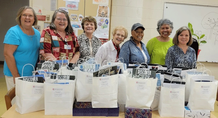 September 29, 2021 - Gamma Chi Chapter members (from left) Dr. Sylvia Alston, Sheila Robertson, Linda Hall, Shirley White, Kathy Stewart, Beginning Teacher Support Chair Norma Retzlaff and Gail Coleman met at Mariam Boyd Elementary School in Warrenton to assemble goodie bags to welcome the 2020 and 2021 new teachers of Warren County. Thirty-four bags for the new teachers were filled with many useful items and snacks brought by members to their last meeting. |