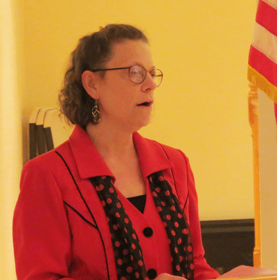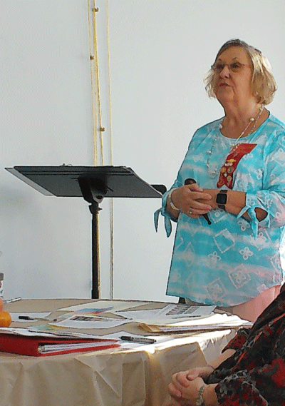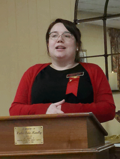 May 12, 2022 - The meeting began with a Celebration of Life ceremony for Harriett Faulkner and Nell White. Pictured above is Karen Paynter giving a tribute for Harriett Faulkner. |