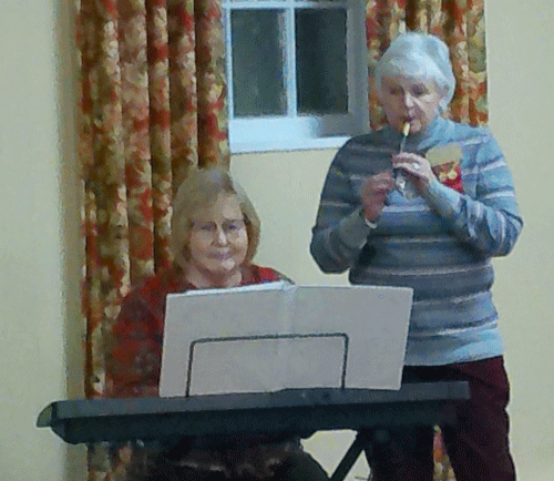 December 1, 2022 - Sallye Duncan on the keyboard and Diane Colin on the flute entertain members with some lovely Christmas music. |