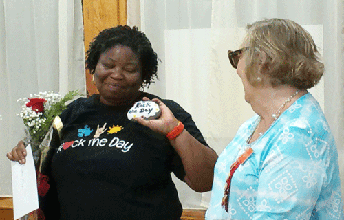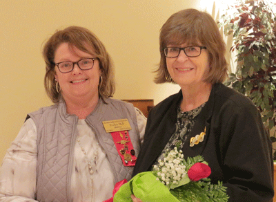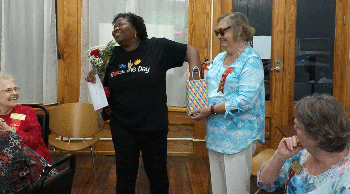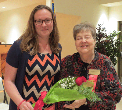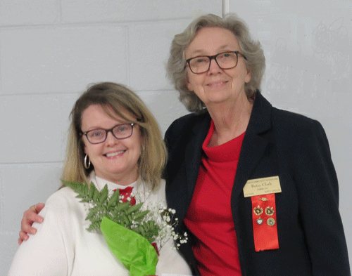 May 12, 2022 - President Evelyn Hall (left) presents Crystal Brantley with a rose to celebrate her retirement. |