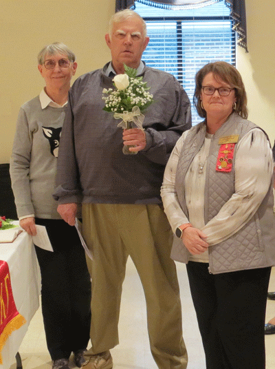 May 12, 2022 - President Evelyn Hall (right) presented Nell White's son, Nat White, and his wife, Candy, with a white rose in memory of Nell. |