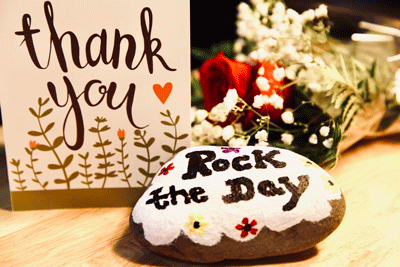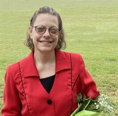 May 12, 2022 - Karen Paynter is given a rose to celebrate her upcoming retirement. |
