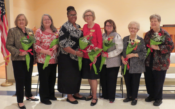 May 12, 2022 - New officers for the 2022-2024 biennium are from left, President Dr. Sylvia Alston, First Vice President Sheila Robertson, Second Vice President Aimee Cooper, Recording Secretary Betsy Clark, Corresponding Secretary Evelyn Hall, Treasurer Shirley White and Parliamentarian Nancy Tunstall. |