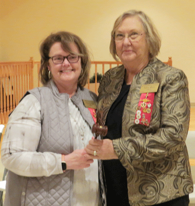 December 1, 2022 - Loree Harris is happy to announce a final total of $140.00 that members contributed to the World Fellowship Fund as Betsy Clark offers Loree congratulations on a job well done! |