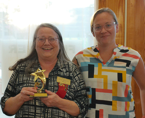 September 1, 2022 - Awards Chair Ashley Barnette (right) presents Sheila Robinson with the Gamma Chi Rising Star Award |