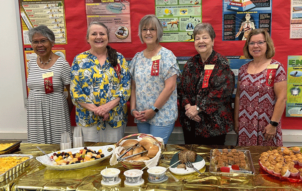 July 31, 2024 - Gamma Chi members hosted a breakfast for Warren County new teachers who were attending a New Teacher Orientation. Pictured above from left, Beginning Teacher Support Chair Norma Retalaff, President Sheila Robertson, Debra Clayton, Nancy Tunstall, and Gail Coleman. Not pictured is Dr. Sylvia Alston. |