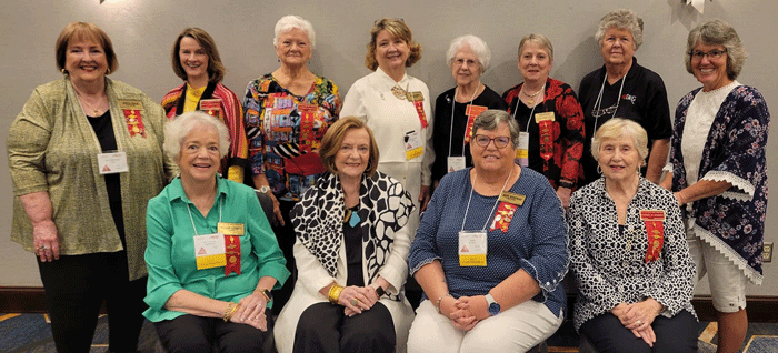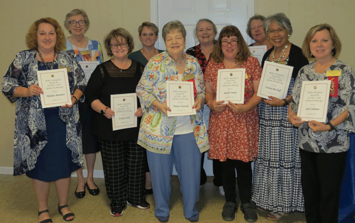 September 5, 2024 - Twelve members were recognized for perfect attendance at all meetings last year. They are, front row from left, Melanie Burnette, Evelyn Hall, Nancy Tunstall, Rachel Smith, Norma Retzlaff, and Gail Coleman; back row from left, Betsy Clark, Sara Council, Sheila Robertson and Loree Harris; not pictured, Ginny Bernard and Renee Mizelle. |