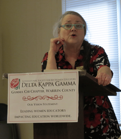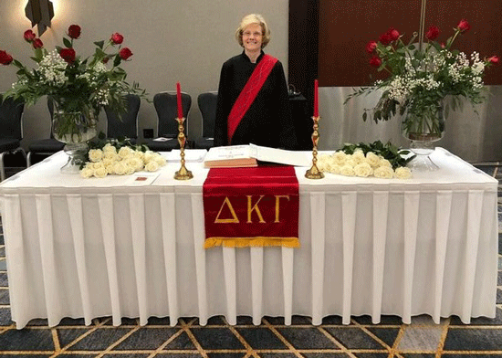 March 7, 2024 - NC DKG President Hilda Parlér brought greetings from NC DKG. She emphasized that diversity at all levels is necessary for the survival of the Society. She encouraged the chapter to enhance initiatives to recruit new members, to reinstate former members, to retain active members, and to recognize members for their service and contributions to the work of the Gamma Chi Chapter. |