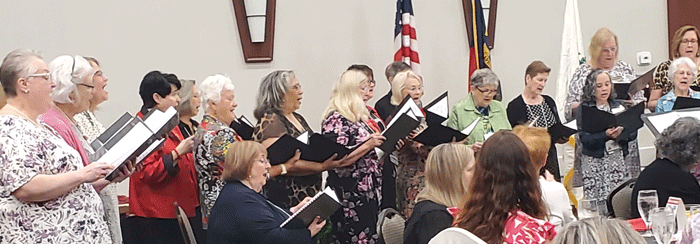 April 28, 2024 - The Convention Chorus is seen here singing at the Sunday Brunch. Our member, Shirley White who passed away on March 29, 2024, is sorely missed as she always sang in the chorus. |