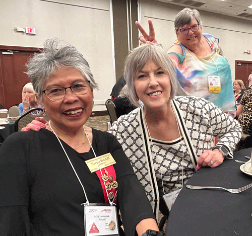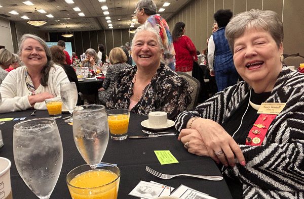 April 28, 2024 - from left, Norma Retzfall and Debra Clayton with NC DKG Past President Beth Winstead having some fun |