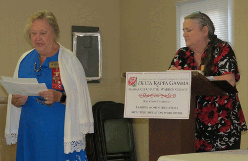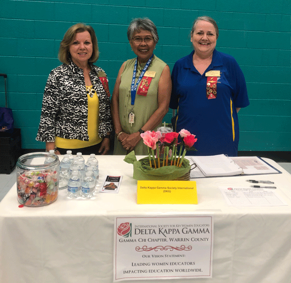 August 19, 2024 - Three Gamma Chi Members, from left, Gail Coleman, Norma Retzlaff, and President Sheila Robertson, represent Gamma Chi at the Convocation for Warren County teachers. |