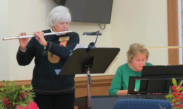 December 5, 2024 - Members Diane Colin on flute and Sallye Duncan at the keyboard provided members with a wonderful selection of Christmas music. |