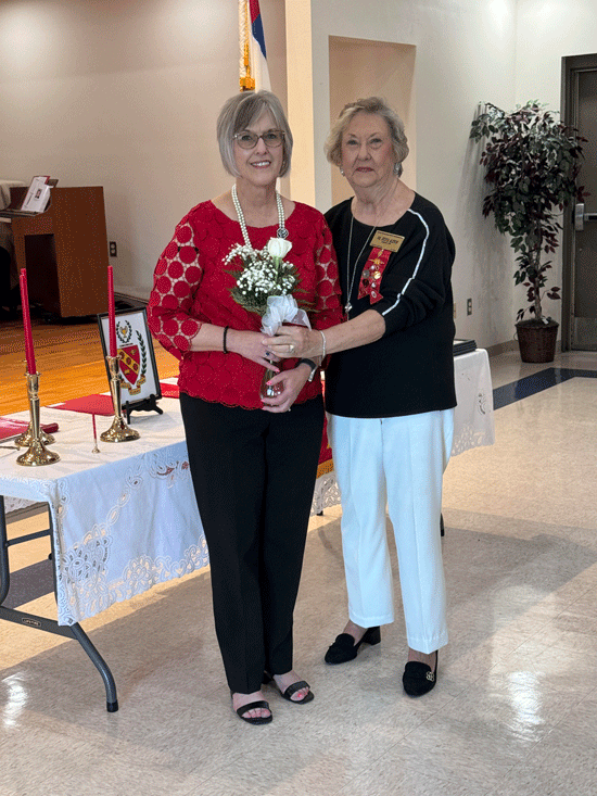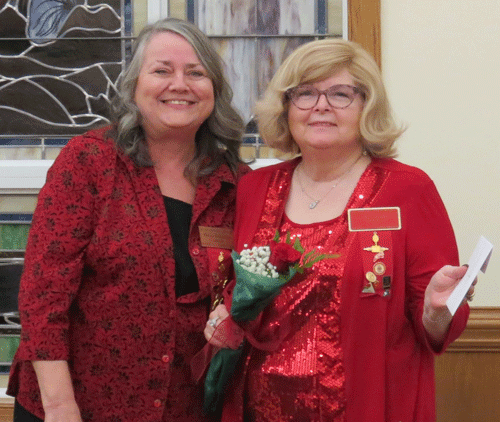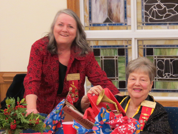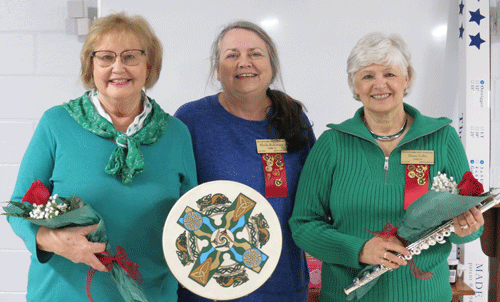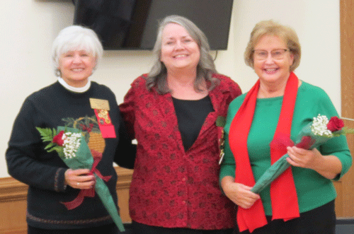 December 5, 2024 - President Sheila Robertson, center, presented Diane and Sallye with a rose in appreciation of their musical presentation. |