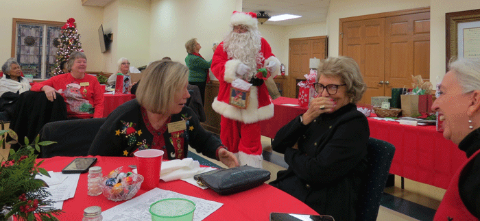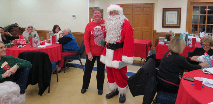 December 5, 2024 - Santa arrived just in time to help us with our Nice Santa Christmas present exchange by delivering the presents to each of the members. |
