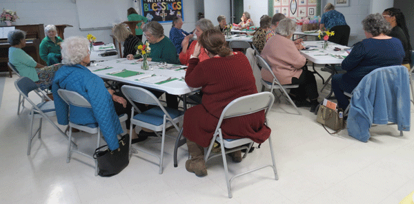 March 7, 2024 - Members arrived at the Littleton meeting to be greeted by lovely flowers and a St. Patrick's Day Riddle Game. |