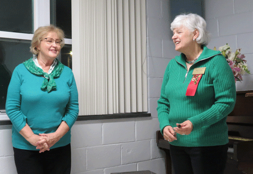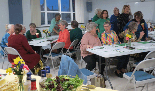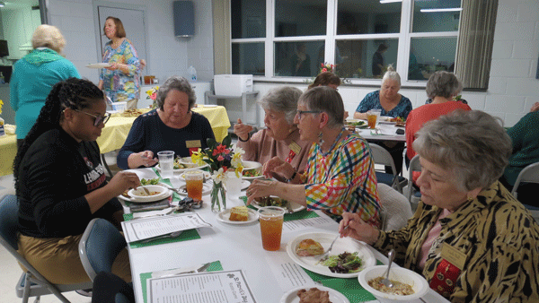 March 7, 2024 - Members Sallye Duncan (left) and Diane Colin provided entertainment after the meal by taking the attendees on a musical tour of Ireland. They presented five instrumental numbers playing Irish whistles, an Irish drum, a flute and the piano. Members sang along on the last song, Danny Boy. |
