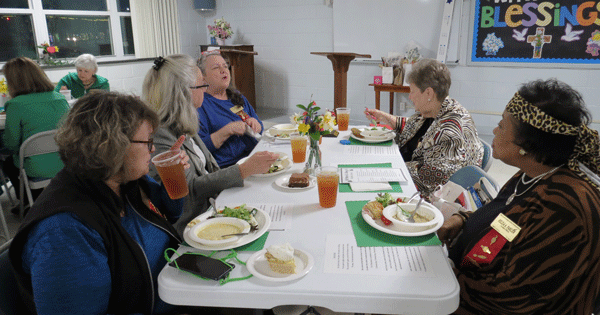 September 5, 2024 - Members and guest (Josalyn Thompson, center) enjoy fellowship prior to the meal. |
