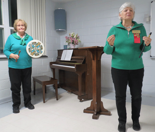 March 7, 2024 - Sallye holds an Irish drum and Diane holds an Irish whistle as they get ready to play. |