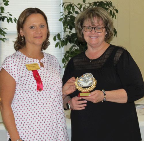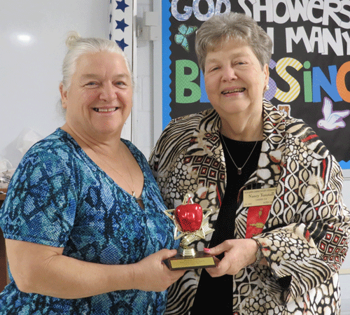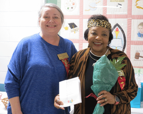 March 7, 2024 - Awards Member Nancy Tunstall (right) presented member Robin Edwards with a trophy in recognition of her being nominated by the chapter for the NC DKG Beginning Teacher Award of Excellence. |