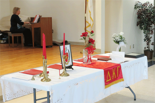 April 28, 2024 - The Ceremony of Remembrance was held by the NC DKG Membership Committee. Member Rev. Charlotte Brendel is pictured here at the beginning of the ceremony. As each name is read, a white rose is placed in the vases with the red roses and the tribute sheet is placed in the Book of Remembrance. |