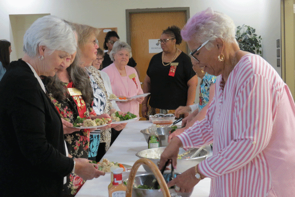 May 16, 2024 - Our caterer, Cheryl Bell (right), serving up her usual delicious meal |
