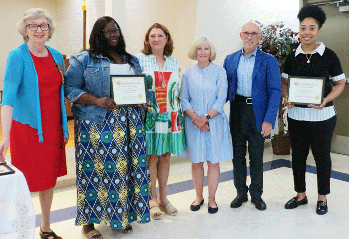 May 16, 2024 - Nancy Blankenship $1,000 Grants-in-Aid: from left, Scholarship Committee Chair Betsy Clark; recipient Bethany Bellamy; presenters Catherine Blankenship, Elaine Blankenship and Richard Blankenship; and recipient Lenesha Northington |