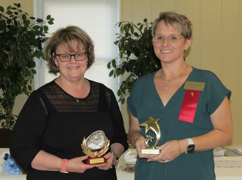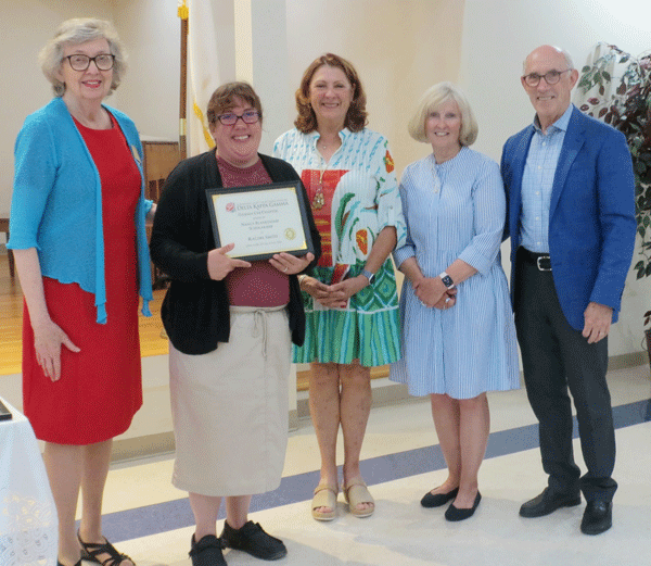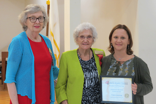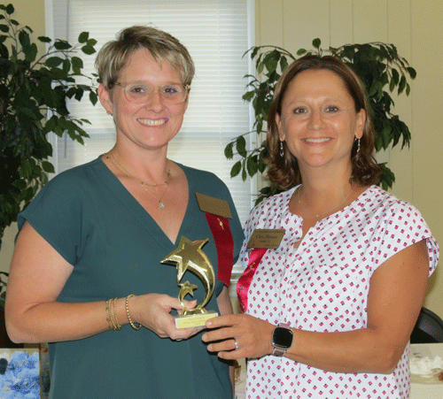 September 5, 2024 - Awards Committee Member Chris Skinner, right, presented Sara Council with the Gamma Chi Risimg Star Award. The Rising Star Award is intended to recognize and encourage key women educators with six or less years of membership in DKG. These members demonstrate exceptional growth in education, leadership, and contributions consistent with DKG’s vision and purposes. They reflect strong potential for successful leadership at the chapter level and beyond. |