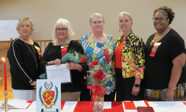 May 16, 2024 - Induction Ceremony: from left, President Dr. Sylvia Alston, inductee Teresa Abbott, officiant Mary Austell, officiant Renee Mizelle and Membership Committee Chair Aimee Cooper |